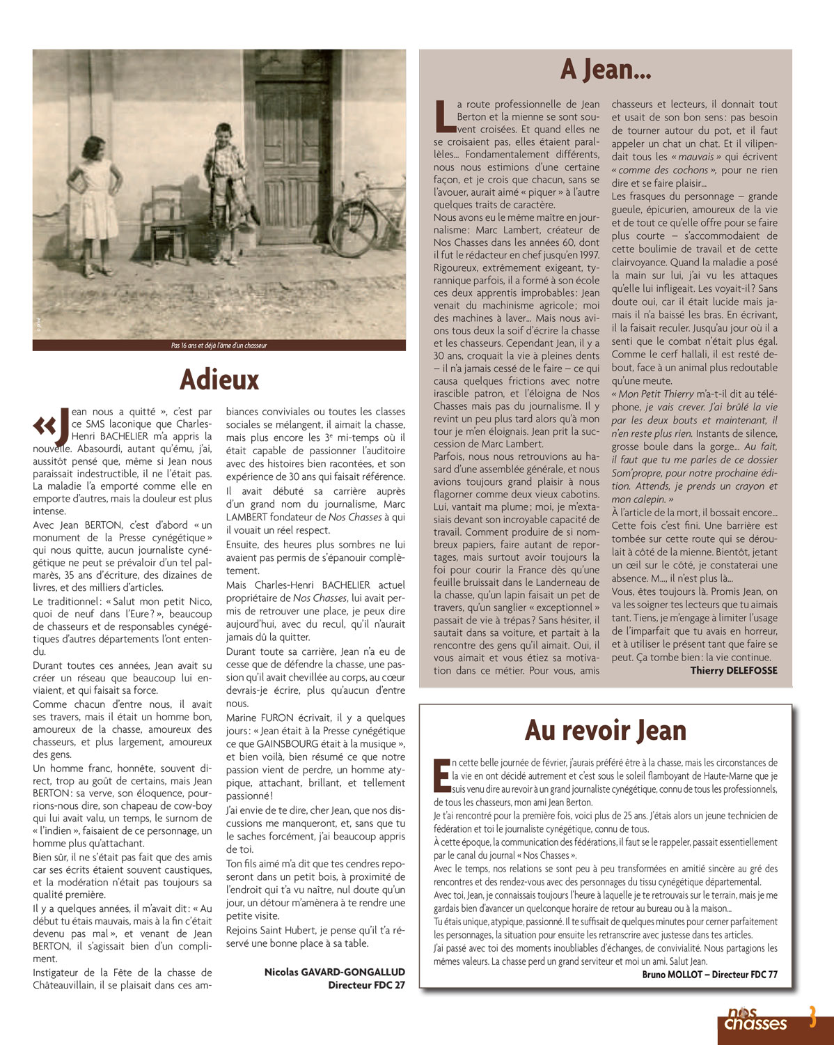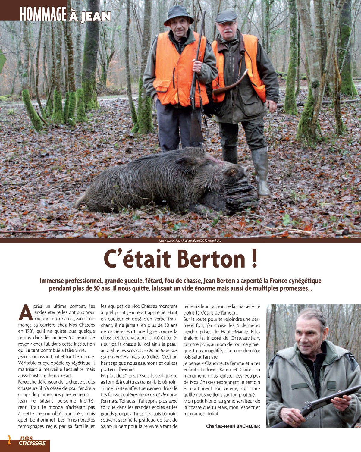 Le journal de "Nos chasses" N°642 de Mars 2013 restera comme le dernier numéro sur lequel il aura travaillé mais qu'il n'aura jamais vu imprimé. Merci à ses collaborateurs qui lui ont rendu un hommage très émouvant.